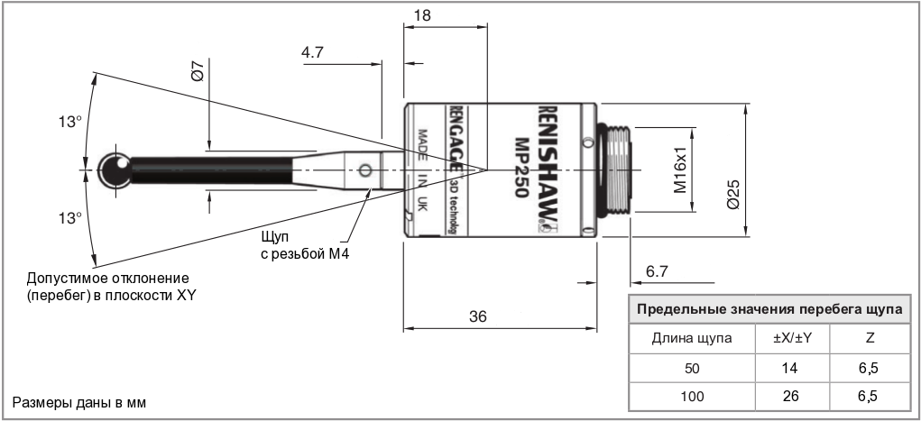 Максимальная длина щупа 100 мм.